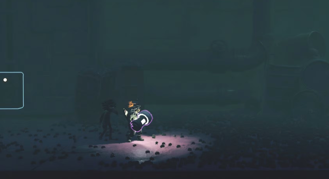 Когда доберётесь до комнаты с розеткой, в которую вставлена батарейка, вытащите её оттуда. Перемещаясь с батарейкой, вы создаёте вокруг себя небольшое свечение. Этот свет — единственное, что отпугивает местных насекомых, также известных как леденцовые долгоносики или конфетные бесята. Только он не позволяет монстрам напасть на вас. перемещайтесь в правый дальний угол и вставьте батарейку в розетку, чтобы включить свет в помещении и навсегда избавиться от жуков. Перенося светящуюся батарейку, не отходите слишком далеко от своего компаньона. Если он окажется за пределами зоны действия вашего фонаря, на него моментально набросятся долгоносики, и вам придётся проходить отрезок заново.