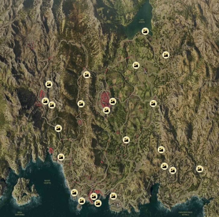 Отправляйтесь чуть северо-восточнее маркера быстрого перемещения L’Antica Riva. Здесь находятся руины храма, в которые можно пройти прямо с трассы, ведущей мимо. Внутри руин находится место для снимка.