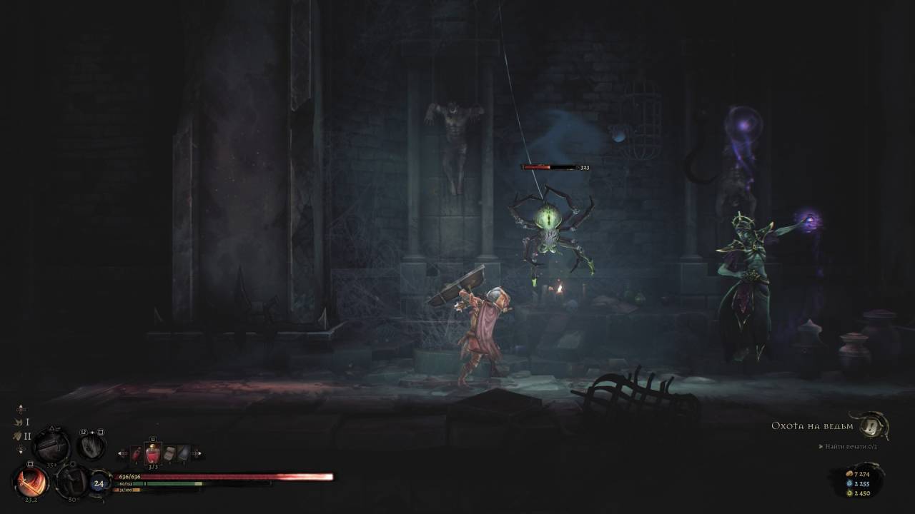 Враги в лучших традициях соулслайков беспощадные и сильные — можно пробегать мимо них, используя перекаты, но мне сражаться с ними не надоедало. Они достаточно разнообразны — есть и летающие монстры, и стреляющие скелеты, и разбойники-маги. Но интереснее всего, конечно, драться с мини-боссами и боссами. В случае с ними Mandragora не пытается казаться слишком уж хардкорным соулслайком — у крупных противников не так много приёмов, а по анимациям замахов можно понять, какую атаку оппонент через секунду исполнит. Эта игра больше о запоминании движений врага, поэтому если с первого раза победить не удаётся, то нередко проходишь такие участки со второго или третьего. Огорчает лишь то, насколько часто повторяются мини-боссы — их красят в другие цвета, но приёмы оставляют теми же. Сражаться с крысой-переростком, которая создаёт грызунов поменьше, вы будете чаще, чем хотелось бы.