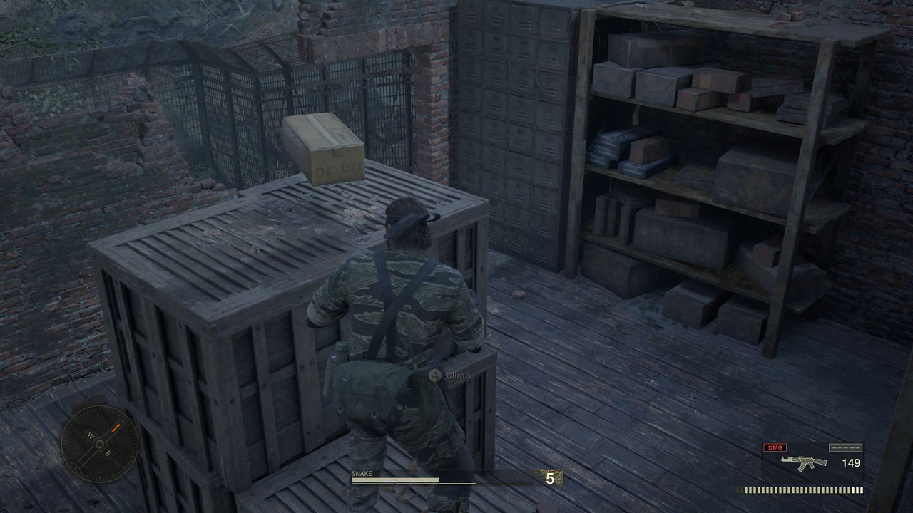 Если вы обездвижили противника таким способом, можете обойти его спереди и навести оружие на голову или пах — тогда солдат вытряхнет содержимое своих сумок, и вам не придётся обыскивать его вручную. После этого у вас будет широкое окно для применения CQC-приёма или захвата. Но если надолго оставить врага в таком состоянии, он в итоге нападёт, так что решите, что делать, прежде чем двигаться дальше.