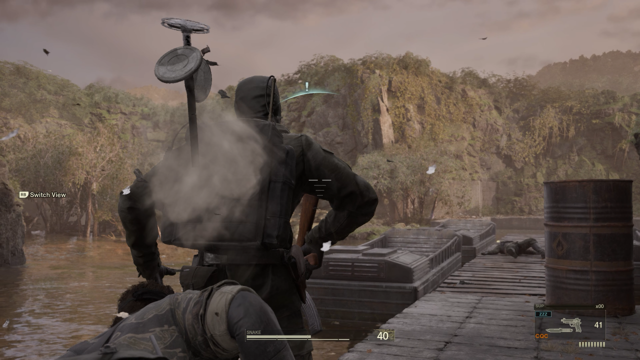 Один из самых полезных предметов, особенно в начале Metal Gear Solid Delta: Snake Eater — это крокодилья маска. С ней, находясь под водой, вы практически невидимы для глаз врагов. Кроме того, она отпугивает собак: они не решатся атаковать, хотя будут лаять и могут привлечь к вам ненужное внимание.