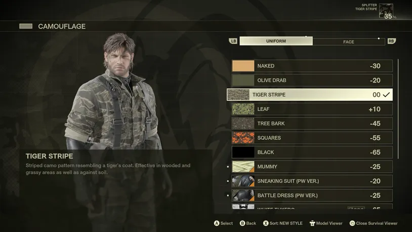 Если вы никогда не играли в оригинальную Metal Gear Solid 3, важно понять, насколько высокий процент маскировки нужен, чтобы враги вас не заметили. Радиус обзора у противников в Metal Gear Solid Delta: Snake Eater довольно большой, и только правильный камуфляж, подходящий под окружающую среду, позволит беспрепятственно проходить мимо и действовать скрытно, что особенно важно при прохождении без убийств. Если дистанция до врага относительно большая, можно спокойно ползти по земле даже под его прямым взглядом при показателе маскировки около 70–80%.