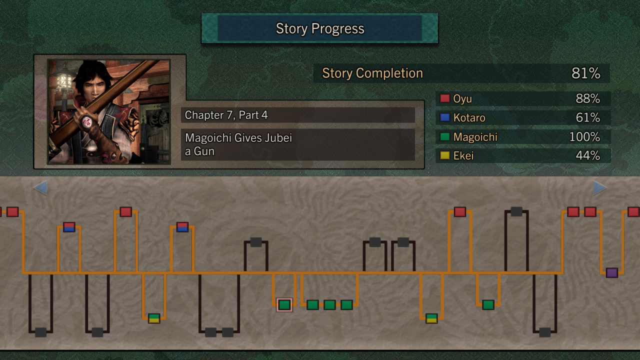 Все бонусные режимы — за вычетом Ultimate Mode, который открывается лишь по завершении Hard Mode, — доступны с самого начала, как и бонусные костюмы Дзюбэя и его боевой подруги Ою. Чтобы сохранить хоть какие-то секреты, создатели порта одарили героев другими уникальными обликами, которые, увы, представляют собой просто перекрашенные версии старых альтернатив. Eighting также очень интересно обошлась с доспехами Саманоскэ, которые вручаются в награду за сохранения из оригинала: студия не просто стащила ассет из первой части, но визуально усовершенствовала его, заменив текстуры и добавив на броню мелкие штрихи.