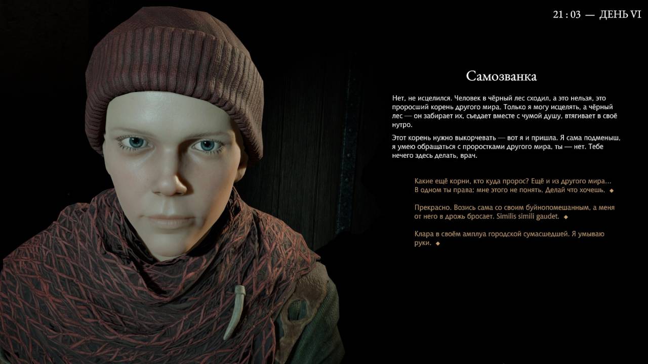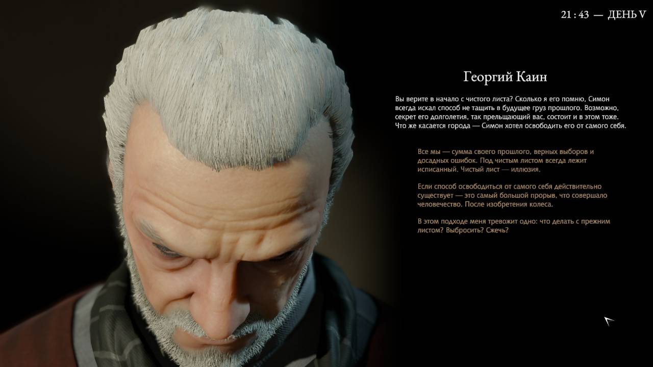 Одна из главных фишек Pathologic 3 — возможность изменять свои решения, которые влияют на судьбы множества персонажей и всего города. Это, безусловно, и дар и проклятие. С первым, думаю, всё ясно, а вот о проклятии скажу отдельно. В каждом дне время идёт очень быстро, а дел много — чисто физически не успеваешь всё переделать и сделать другой выбор.
