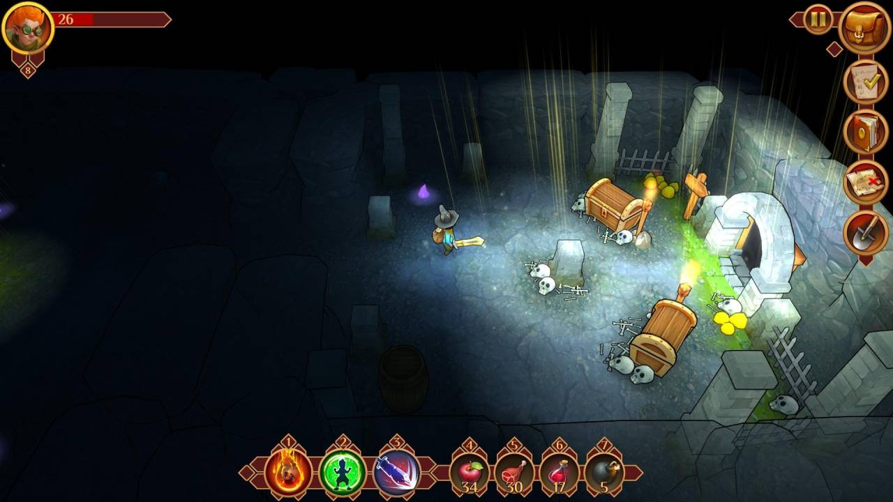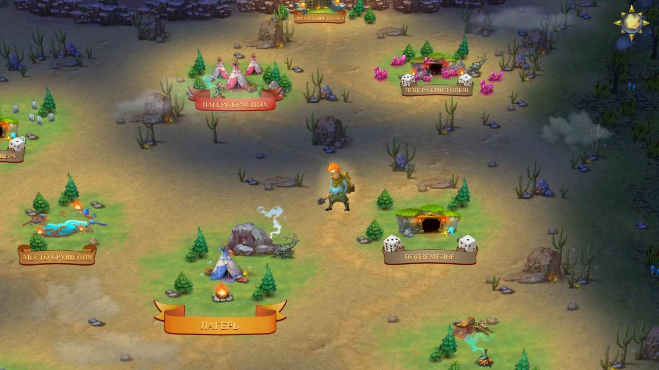 Но прежде чем отправиться на поиски приключений, придётся основать свой лагерь, пригласить туда плотника, кузнеца, местного алхимика и даже самогонщика-менялу. А для этого нужно рубить деревья и долбить камень, расчищая место для их жилищ или просто собирая ресурсы для постройки. А для кого-то нужно выкопать украденный сундук. К слову, значок лопаты, прямо как в «King’s Bounty. Легенда о рыцаре», выведен на экран отдельно, что позволяет копать в любом месте. Или не копать. Лучше это делать в подсвеченных огоньками точках, чтобы действительно наткнуться на сокровище или что-нибудь по квесту.