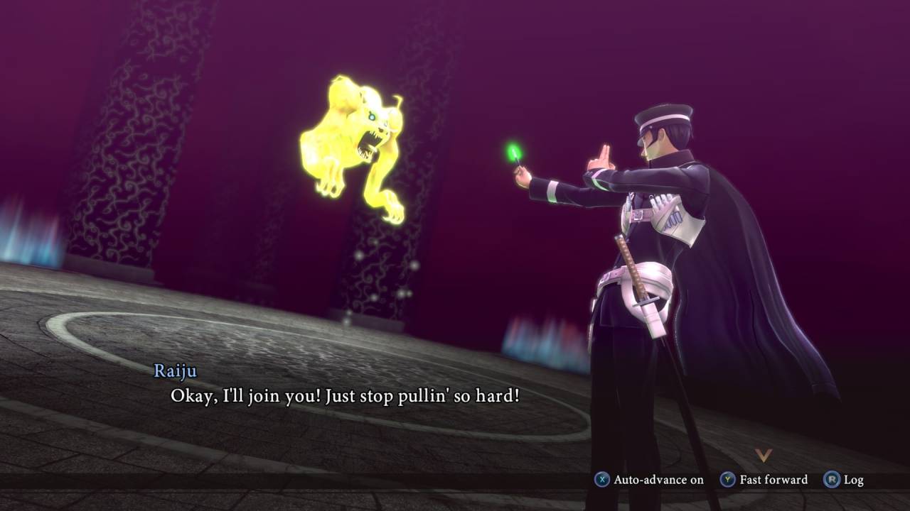 Несмотря на все эти улучшения, интерфейс остался примерно таким же перегруженным, как в оригинале. Во-первых, тут есть два меню, открывающиеся разными кнопками, и я постоянно путался между ними, когда нужно было во время исследования призвать другого демона или забрать награды за повышение уровней своих подопечных. Во-вторых, в игре очень много лишних диалогов и всплывающих окон. При смешивании демонов, к примеру, каждый из них должен что-нибудь сказать, что-нибудь вам напоследок подарить, учёный реплику произносит — кнопка быстрой перемотки полезна примерно в каждой подобной ситуации. Ну и структура истории, вынуждающая порой бегать туда-сюда ради секундных поручений, иногда наскучивает — хорошо хоть, добавили быстрое перемещение из любой точки, пусть и за игровую валюту.