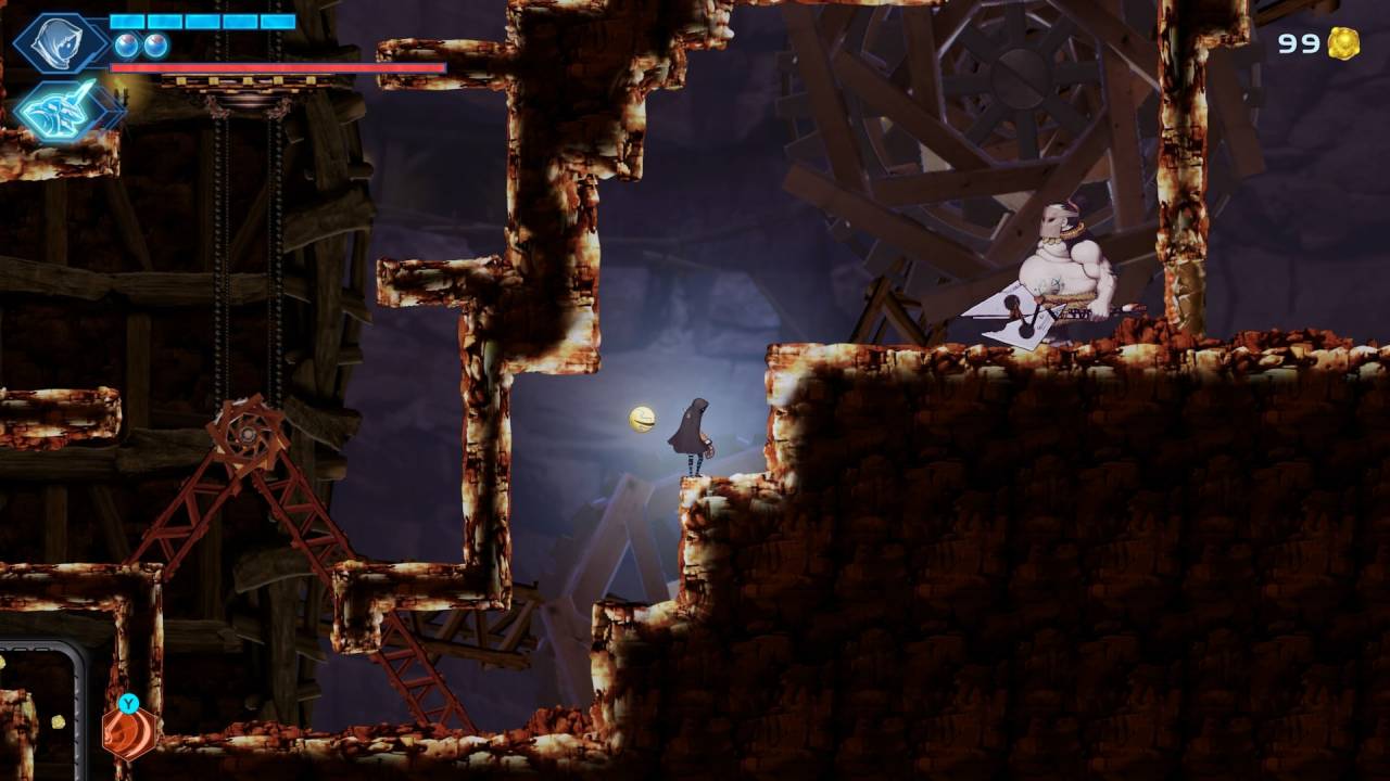 И ладно бы только внешне карты были так себе — у них ещё и дизайн странный. Для многих метроидваний характерны лабиринты, и тут их тоже более чем хватает, однако суть лабиринтов обычно в том, что они приводят к каким-то бонусам. Где-то сундук спрятан, где-то — залежи ресурсов, где-то — опциональный мини-босс. Тут такое тоже встречается, но чрезвычайно редко. В основном это лабиринты ради лабиринтов — если решите не идти направо, а прыгнуть на платформы сверху, то нередко в конечном итоге попадёте в ту же точку. А сколько здесь больших пустых комнат… Каждый раз кажется, что это арены с боссами — дойдёшь до края, и тебя запрут, пока не победишь. Но нет, это буквально большие пустые комнаты, где, кроме как бежать направо или налево, делать нечего.