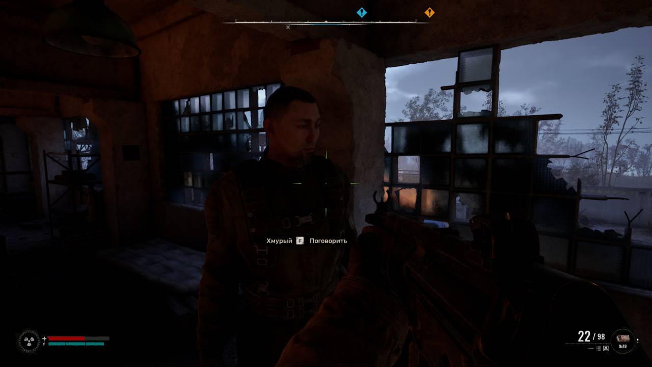 Сделав это, приступайте к обыску бункера. Обыщите трупы трёх учёных. Один из них — Антон Негода. Нажмите на клавишу P, чтобы прочитать все записи с найденного КПК Негоды. Герман свяжется с вами, и задание обновится. К слову, прямо сейчас у вас уже могут быть первые намёки на перегруз: в бункере есть синий ящик, в котором вы можете спрятать ненужные предметы. Например, лишнее оружие.
