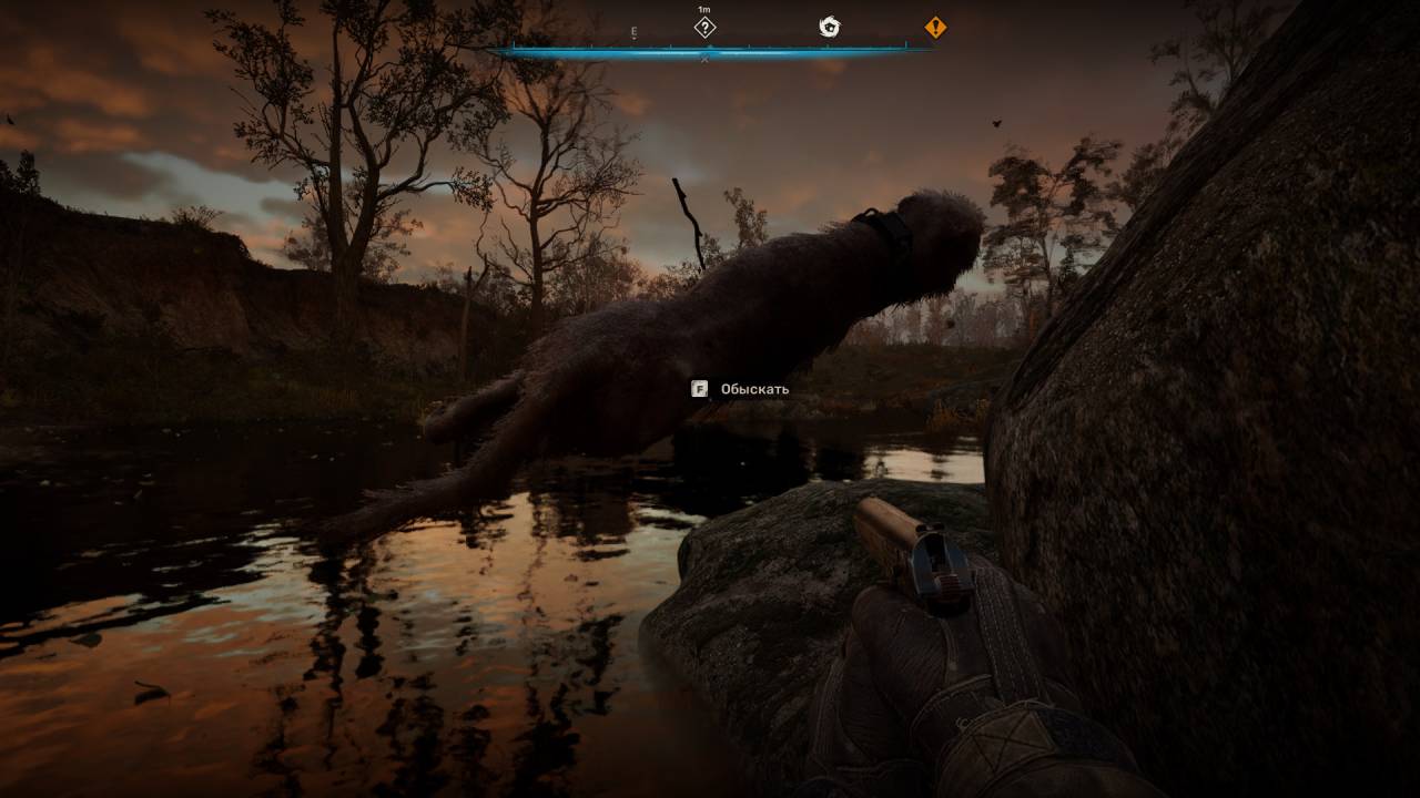После двигайтесь к аномалии Бульба. Данная аномалия периодически притягивает к себе все окружающие объекты, так что обязательно прячьтесь за техникой и камнями. Подойдите к собаке на камне и обыщите её (на компасе будет «серый крестик», указывающий на труп пса с лутом). Если вдруг собаки не будет, знайте, что это баг.
