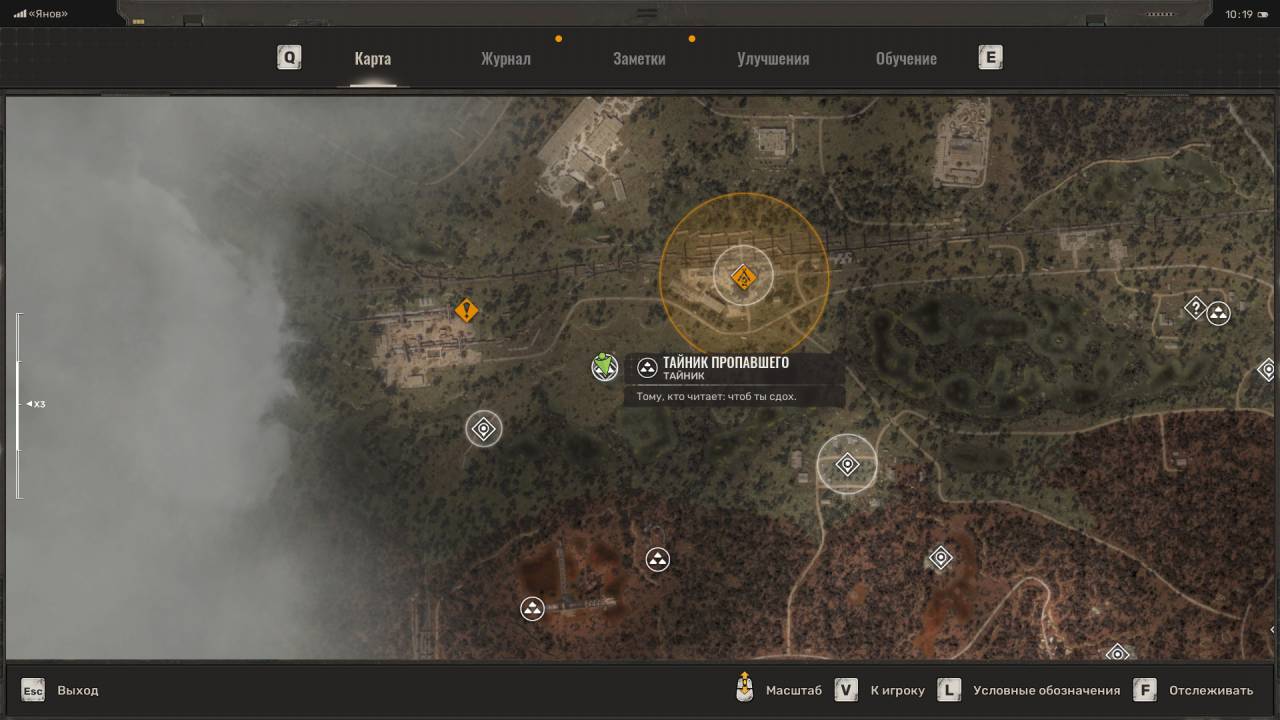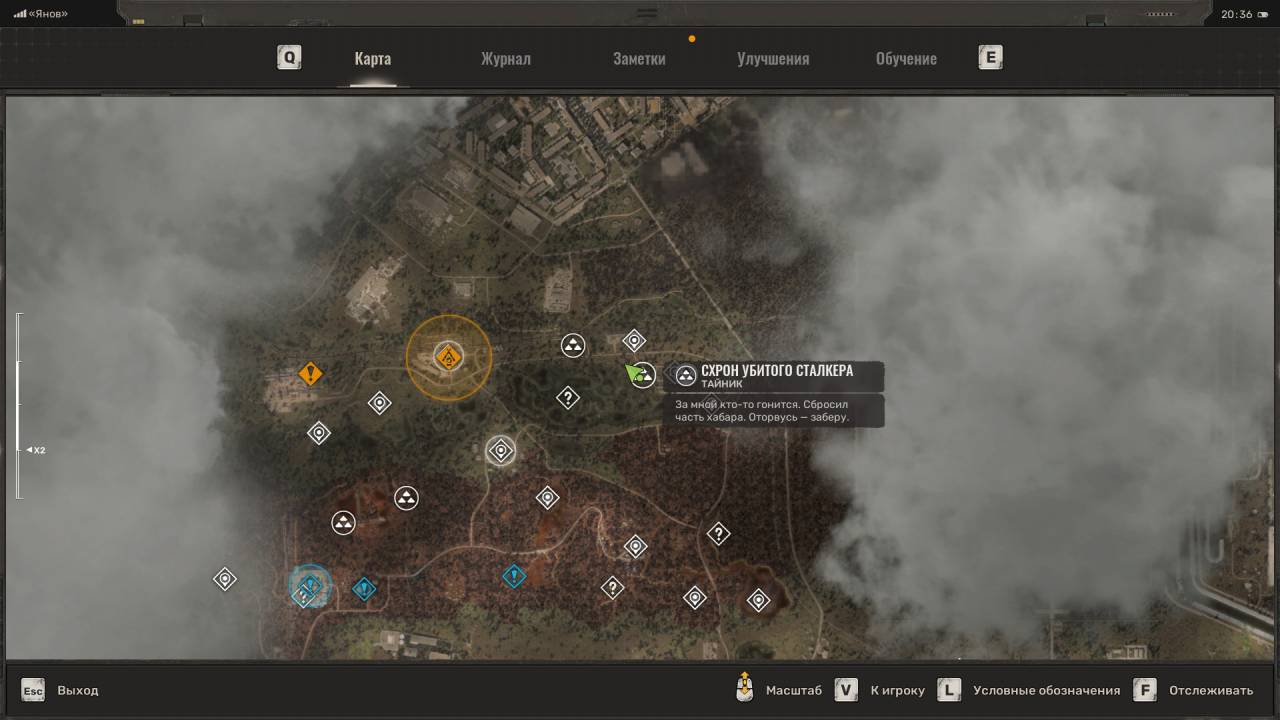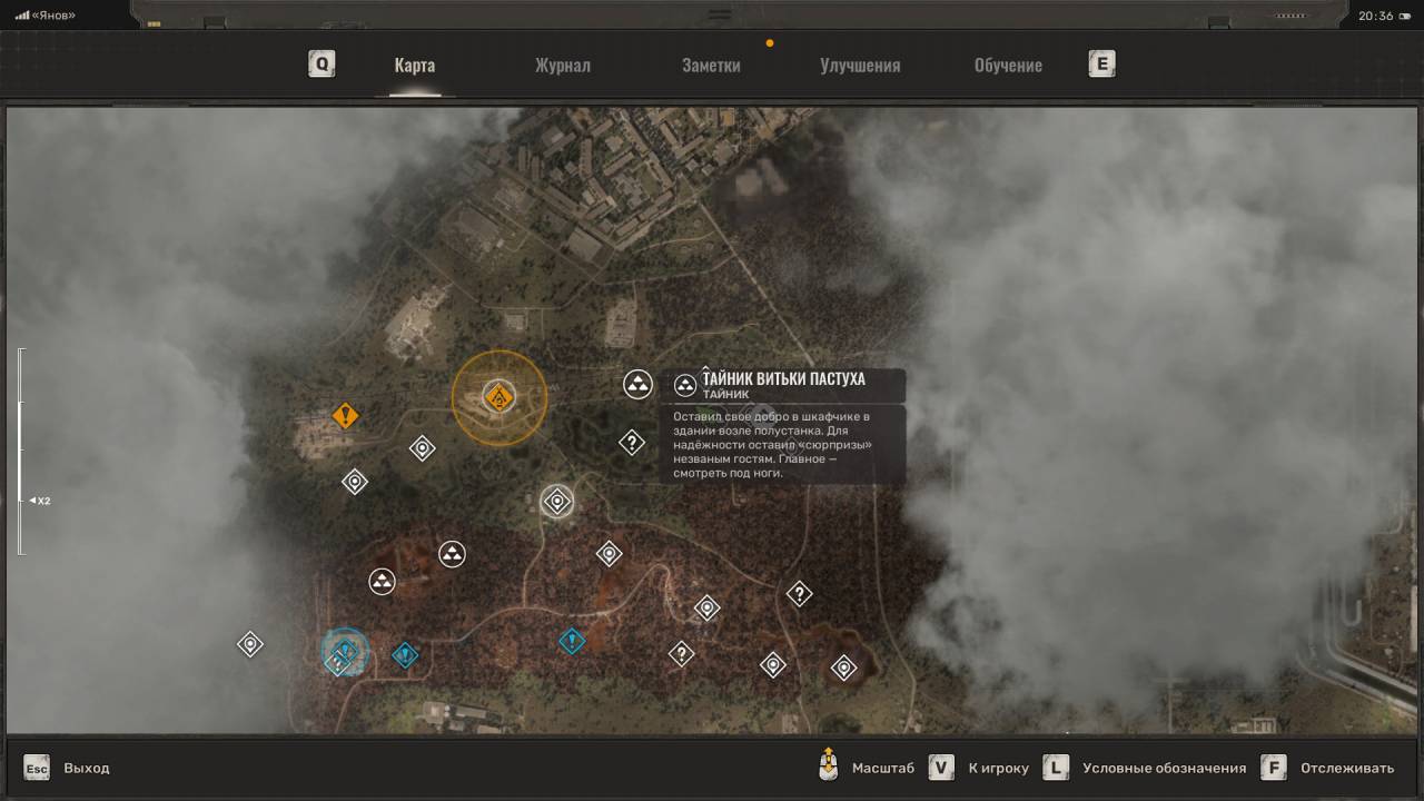 Нычка пропавшего. Отправляйтесь на запад локации Янов по маркеру, который указывает на перевернутый железнодорожный состав. Вас интересует последний вагон, лежащий на боку. Чтобы попасть внутрь, нужно запрыгнуть на вершину вагона. Для этого рекомендую подойти со стороны колес и прыгать по прямоугольным выступам. Просто прижмитесь к вагону и прыгайте, прыгайте, пока не окажетесь сверху. Затем спуститесь вниз через открытую дверь и найдите сумку. Чтобы выбраться, используйте ящики под открытой дверью.