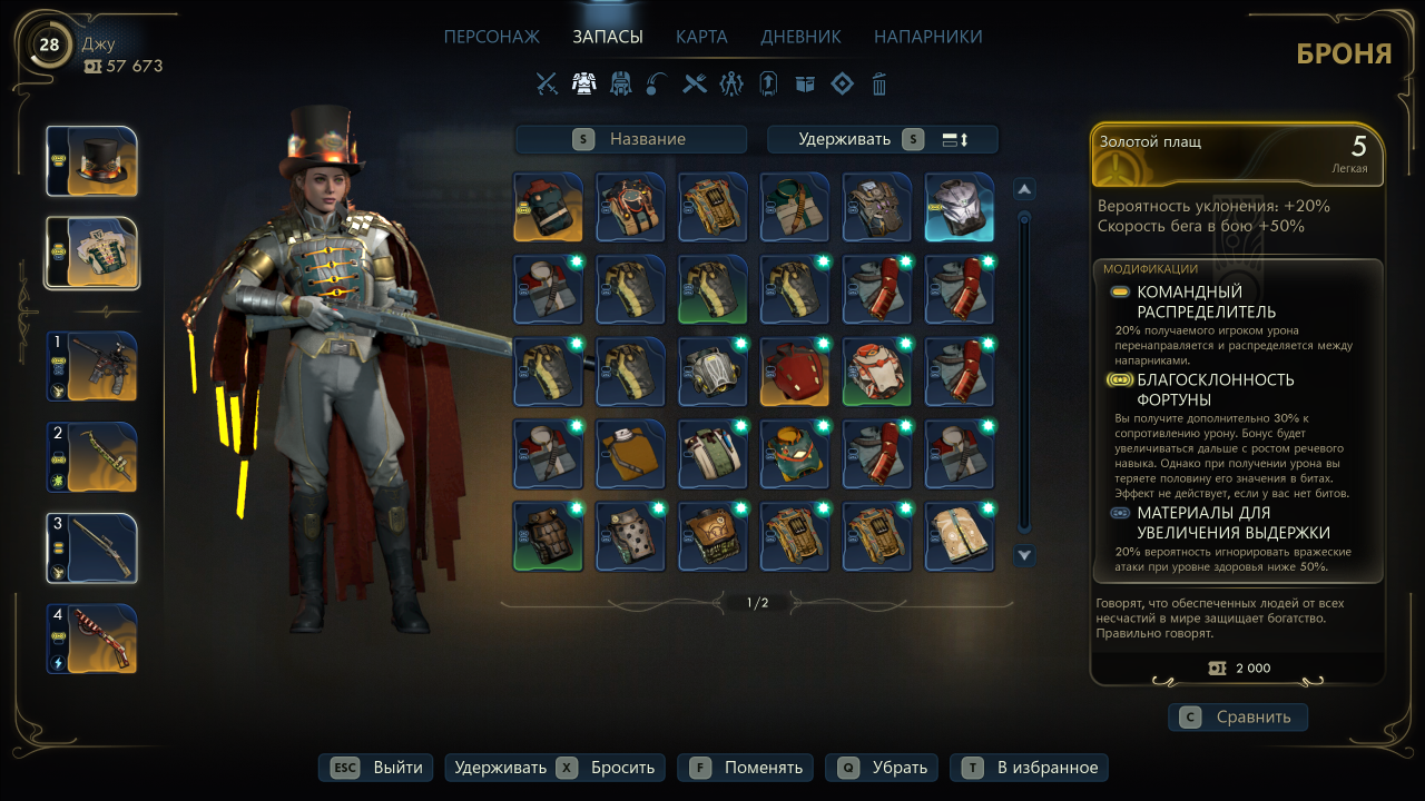 Разнообразие, которого так не хватало первой части, присутствует не только в диалогах. Когда дело доходит до боя, в инвентаре всегда найдутся уникальные оружие и броня, которые подталкивают к экспериментам и мешают засидеться в одном билде. Я, например, нашла красивый плащ, который отнимает биты (местную валюту) пропорционально полученному урону, — пришлось переиначить подход к битвам: взять в руки винтовку и переложить часть работы на плечи сопартийцев, ведь я лучше умру, чем потрачу деньги…