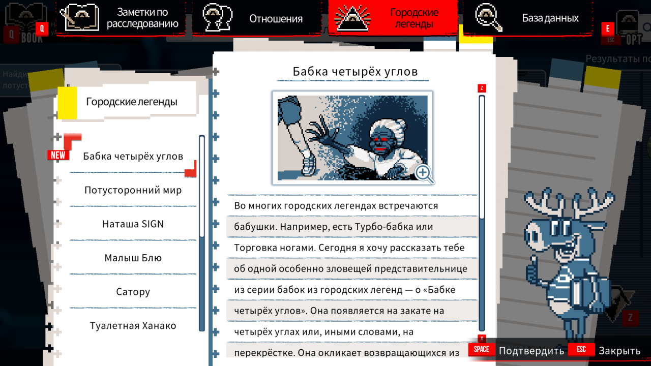 То, что на первый взгляд казалось простенькой визуальной новеллой с минимумом интеракций, оказалось лучшей игрой этой зимы — для меня так точно! Urban Myth Dissolution Center — это захватывающий и жуткий детективный хоррор с отличным музыкальным сопровождением, стильным пиксель-артом, интересным сюжетом в духе «Сверхъестественного» и «Секретных материалов» и крышесносной развязкой, которую я перевариваю вот уже несколько дней.