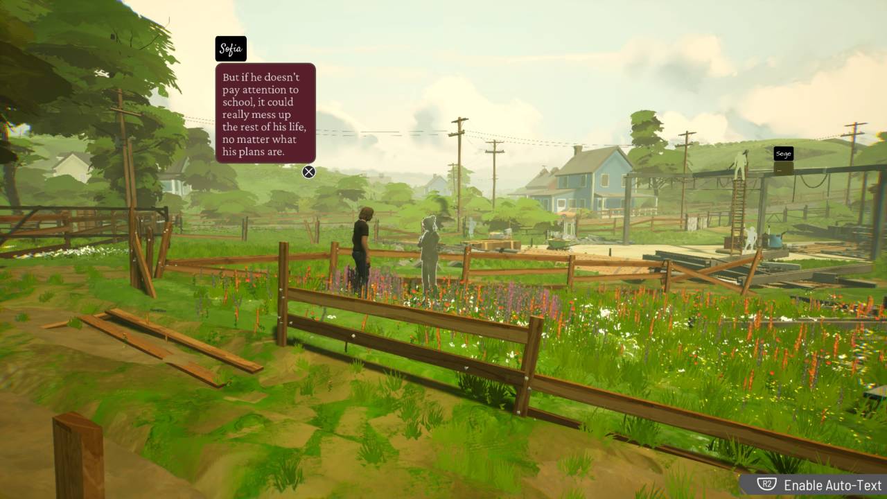 И бытовуха эта, надо признать, способна увлечь. К персонажам привязываешься очень быстро, и впоследствии, когда провёл с ними не один и даже не пять часов, они уже становятся как родные. Со всеми действующими лицами мы знакомимся на ферме: помогаем отцу закончить постройку, пытаемся вразумить брата, проводим время с будущей женой, ближе знакомимся с её матерью. За пределы небольшого участка мы не выходим, но это и не нужно — разработчики уместили на локации немало историй, и после фермы структура будет той же, только в иных декорациях.