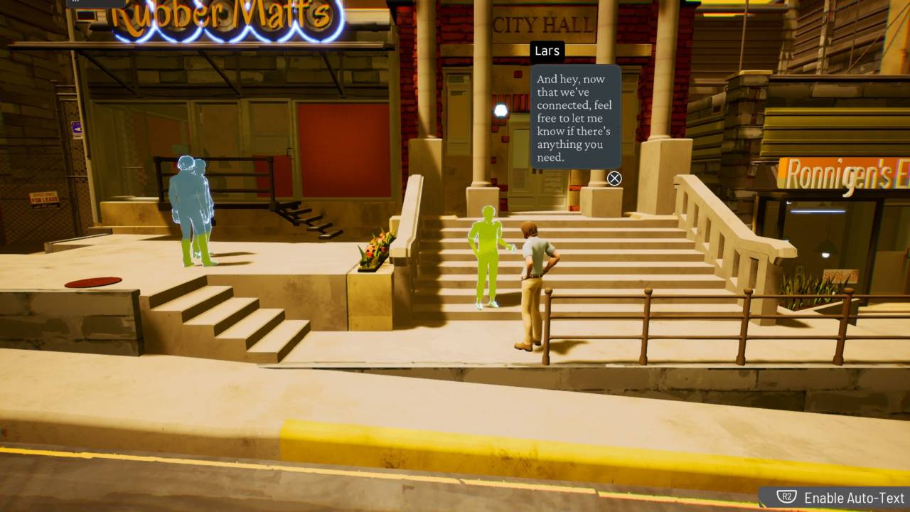 Мини-игр здесь нет (не считать же ими моменты, когда вас просят зажать «Квадрат»), головоломок тоже. Местное подобие пазлов — это скорее часть истории с очевидными подсказками. В одном из эпизодов нужно найти ключ от сейфа, но герой не знает, где именно он лежит; игра подсказывает все десять мест, куда его могли положить, и нам достаточно лишь проверить все. Этот эпизод на заправке вообще один из самых интересных, поскольку мы встречаем там нескольких клиентов с разными запросами и выбираем, как на них реагировать. Но если до него вы принимали другие решения, можете полностью его пропустить и быть в этот момент на другом конце карты.