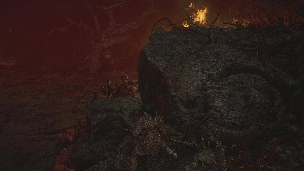 Точно так же, атакуя руки Древа душ в луже воды, у его основания, будьте осторожны: он может время от времени выбрасывать из воды потоки энергии, которые также быстро накапливают отчаяние. То же самое произойдёт, если вы стоите в воде. Когда увидите красную энергию вокруг его рук, отступите из воды и ждите, пока эффект не рассеется.