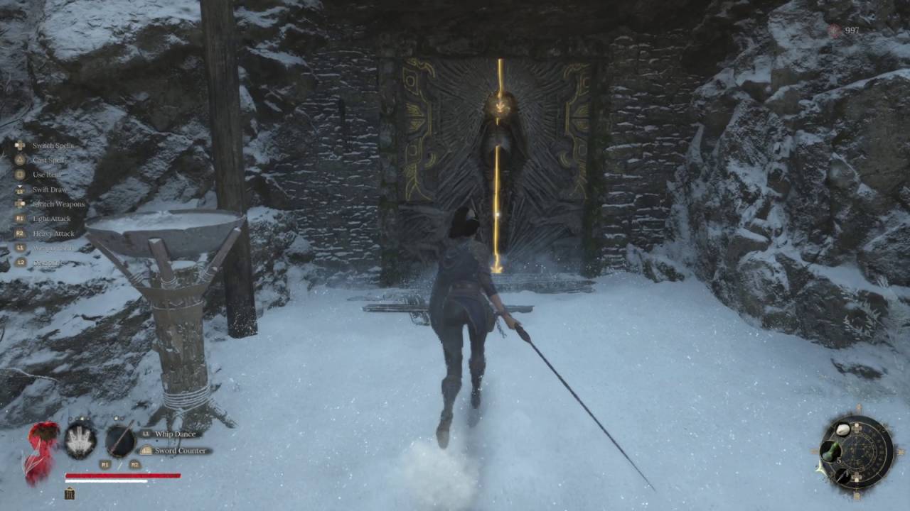 За мостом — перевал Снежной Вершины… и почти сразу вас ждет битва против босса. Но прежде можно исследовать пару дополнительных территорий, мимо которых вы прошли ранее, и победить опционального босса. К слову, за его уничтожение также опустился бы мост.